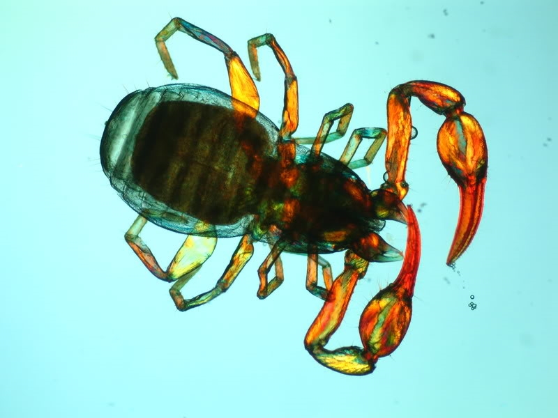 wiederum möchte ich ein Fang aus einer Bodenprobe zeigen. Es ist  ein Moosskorpion. Seine Länge beträgt 2mm!