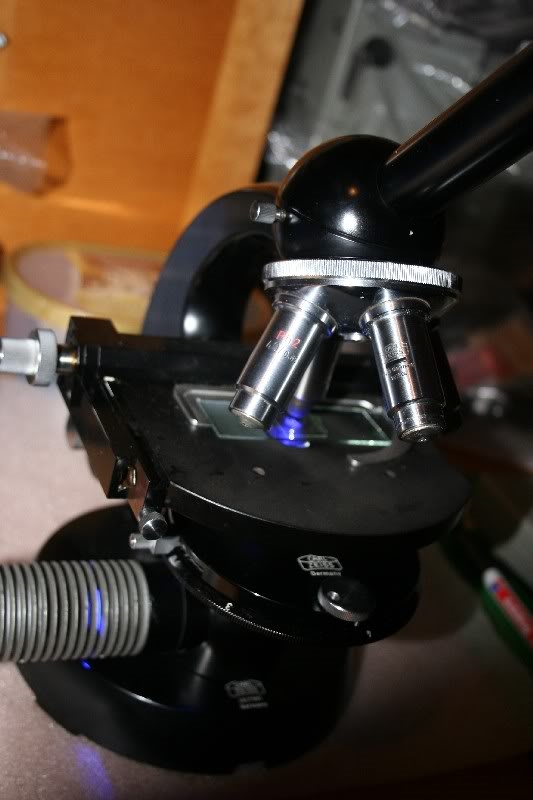 Es sind auch keine Zwischentuben für die Filteraufnahme zwingend erforderlich, denn es reicht schon aus, wenn man den Kantenfilter in den Revolverkopf platziert und den Anregungsfilter auf die Lichtaustrittsöffnung von der Ansteckleuchte.