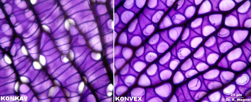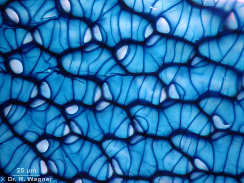 Beispielhaft könnte man das mit Toluidinblau oder Safranin probieren. Bei Toluidinblau müßten dann lignifizierte Zellwände grün und nicht-lignifizierte Zellwände blau färben.