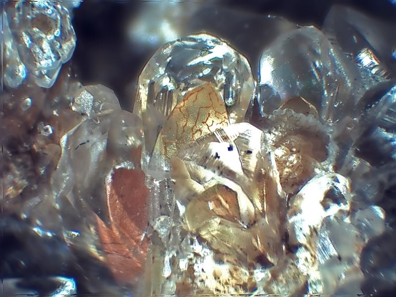 von einer kleinen Calcitkristallstufe habe ich am Stemi sieben Bilder gemacht und diese mit Picolay gestapelt. Es kam mir auf den "gemusterten" Phantom in einem der Kristalle an, dieser ist ca. 2 mm groß.