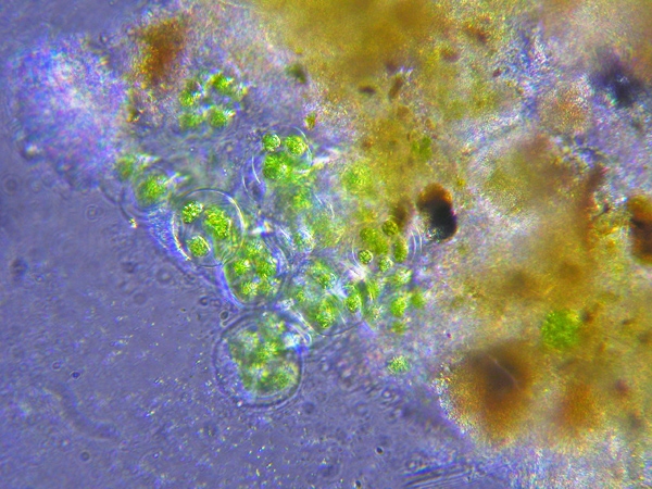 das sind leider keine Volvox. Wie geschrieben kommen sie meiner Kenntnis nach nicht in Moorgewässern vor. Sie sind auch durch die rollende Fortbewegung fast unverwechselbar (ggf. mit Uroglena).