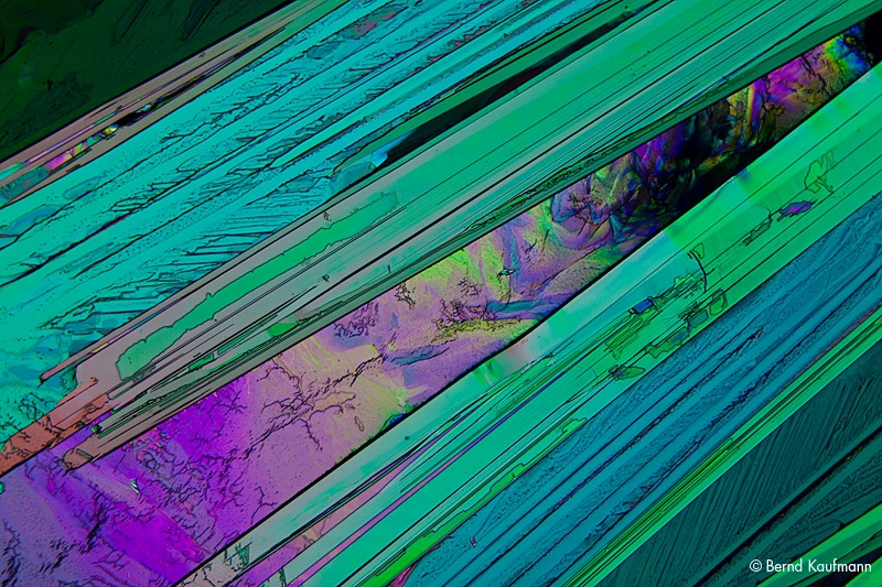 die Zimtsäure hatte es mir von Anfang an angetan. Deshalb hat mir Dein Misserfolg keine Ruhe gelassen und ich habe ein zweites Schmelzpräparat gemacht. Die erste Schmelze ging nicht gut, wahrscheinlich, weil ich die Wäscheklammer zu spät angeklemmt hatte. Darauf folgte die zweite Schmelze dieses Präparates und das hat sofort geklappt. Hier 3 Bilder aus diesem Präparat: