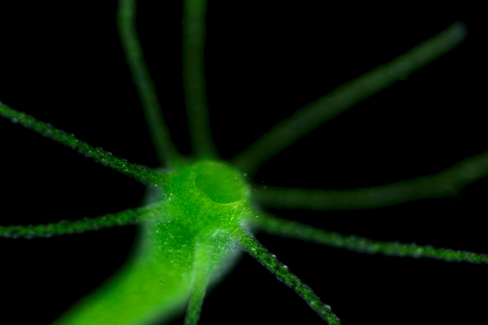 Grüne Hydra, jetzt mit Blitz aufgenommen