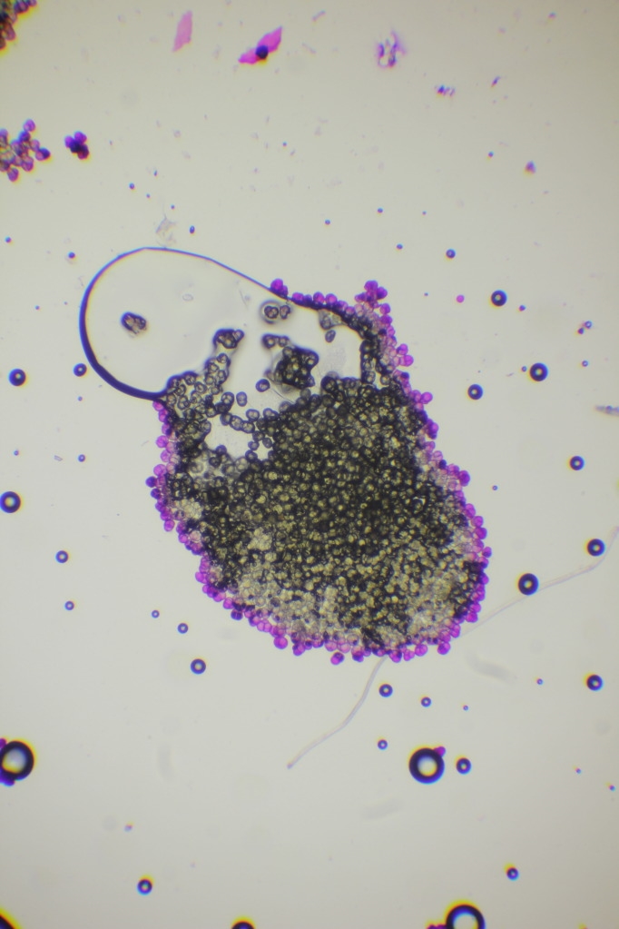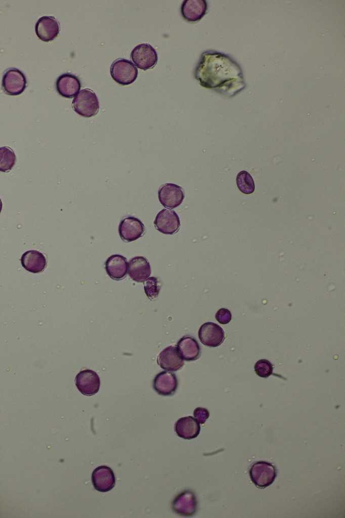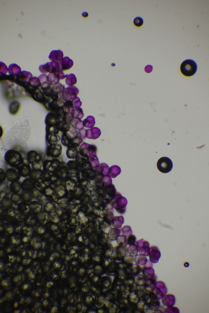 Ich an dieser Stelle ein paar Bilder "meiner" Pollen zeigen, einmal die von Akelei, erst einmal gefärbt: