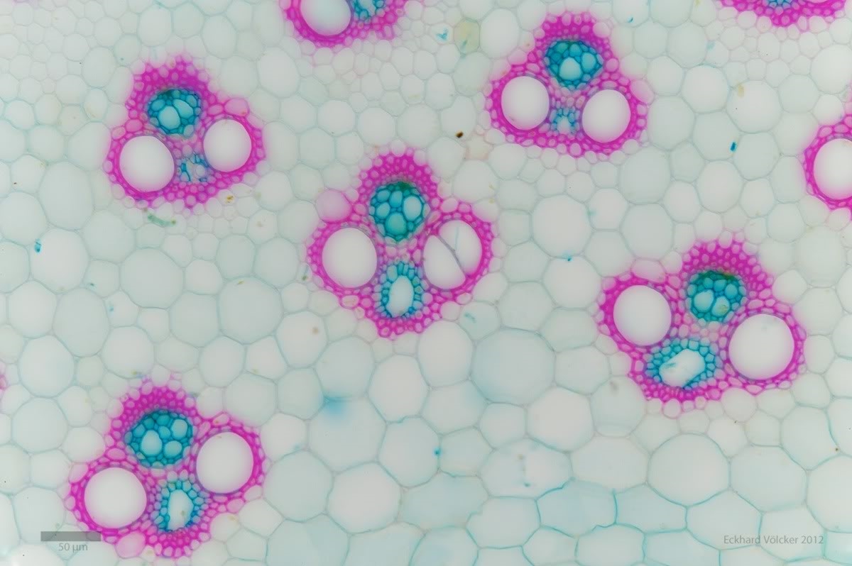 hier ist noch ein schnelles Bild von den "frischen" Leitbündeln. Die Färbung sieht ohne Lignin richtig bescheuert aus :D Meine Tochter behauptet, es wäre ein Bettwäschemuster  :(