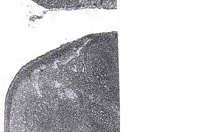 Ich denke weiterhin, daß es die DOM-Region im terminalen Ileum darstellen soll. Das Fehlen von Sekundärfollikeln schließt doch das Ileum nicht aus! Außerdem sind da Keinzentren mit Sternhimmelmakrophagen, demnach also auch Sekundärfollikel. Evtl. vorhandene oder fehlende parafollikuläre Zonen sind dennoch kein Kriterium für Organdiagnosen! Eine Tonsille erkenne ich nicht, das überkleidende Epithel scheint mir jedenfalls kein mehrschichtiges Plattenepithel, sondern Zylinderepithel zu sein! Die erkennbaren Krypten sind in der Tat spärlich - was aber in der DOM-Region des Ileums schon sein kann - und soweit ich erkenne durch Drüsenepithel ausgekleidet. Letzteres spricht auch gegen Tonsille. Ich denke, das Bild wurde in einem 10er Objektiv o.ä. gemacht, das schätze ich anhand der Größe der Lymphozyten ab. In einem solchen Maßstab müsste ein mehrschichtiges Plattenepithel wie in der Tonsille breiter sein. Aber wie gesagt, man erkennt es nicht, man kann nur ahnen. Nur am linken unteren Bildrand erkennt man in den Epithelien längliche Zellkerne in einer Palisadenstellung, das haben Plattenepithelien in dieser Form nicht.