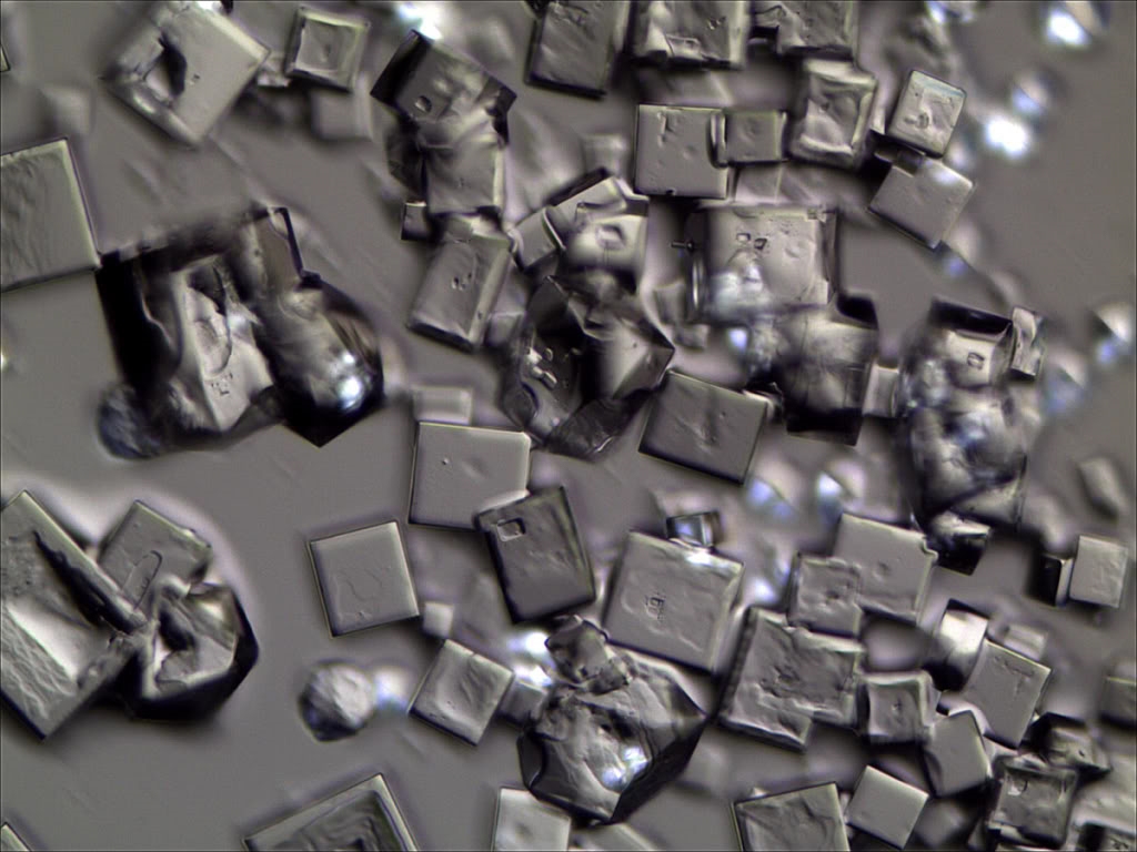 ich habe ein Präparat mit Meerwasser austrocknen lassen, es haben sich jede Menge Kristalle gebildet: