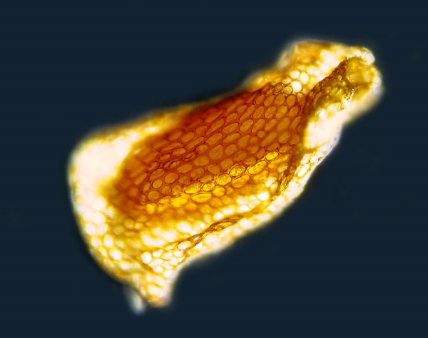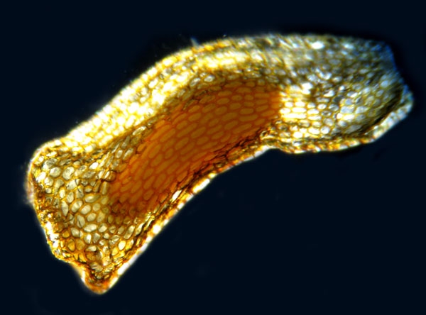 Die eigentlichen Samenkörnchen (ca. 450-500 µm) befinden sich in einem "Netz", das das spezifische Gewicht verringern soll und so die Meteorochorie ermöglicht. Die Aufnahmen enstanden mit dem 6,3/0,20 Neofluar (Dunkelfeld)