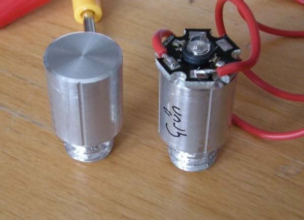 Ich habe mir Kühlkörper mit Lampenfassung drehen lassen.
