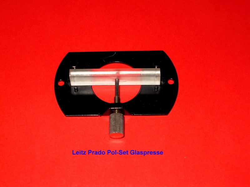In dem Kasten waren 15 Präparate. Zwischen drin fehlte die Nr. 8: es sind also 16. Über Olaf bekam ich Kontakt zu einem Mikroskopiker aus USA, der mir die originale Beschreibung gescant hat. Daraus ging hervor, dass das "Präparat" Nr. 8 keines im üblichen Sinne ist, sondern eine kleine Glaspresse, mit der man Spannungsdoppelbrechung in Glas oder Kunststoff erzeugen kann. Er hat mir auch ein Foto geschickt. Damit war dann auch für Olaf klar, dass er dieses kleine "Werkzeug" in seiner Sammlung hat und - oh Glück - sogar 2x! Danke Olaf!