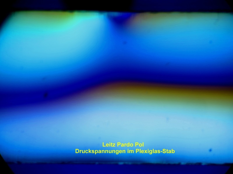 Davor sitzt eine Art optische Bank mit vielen Spezialzusatzteilen, die letzlich ein Pol-Mikroskop draus machen. Eher müsste man sagen Makroskop.