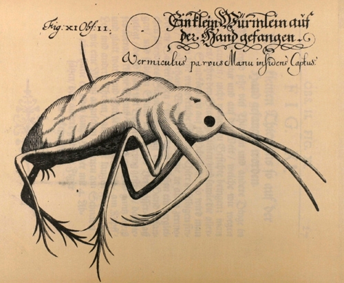 Fliegen und Flöhe hat er allerdings schon recht fein beobachtet und gezeichnet.