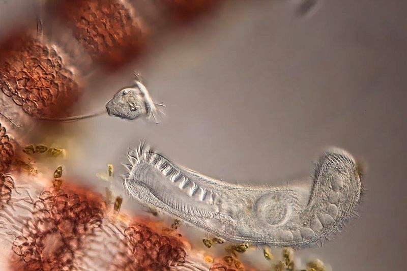 und dann noch zwei Ciliaten: ein Sauginfusor, Acineta tuberosa,  und ein Ciliat, dessen Name ich noch nicht herausgesucht habe. Er erinnert etwas an einen Pottwal :)