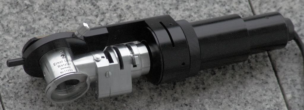 Die angeflanschte Beleuchtung deutet bereits darauf hin, dass der Illuminator für ein Stativ gedacht ist, das keine eigene Auflichtbeleuchtung mitbringt, wie etwa das Ortholux. Ich vermute mal, das dieses Gerät für das Dialux gedacht war (auch wenn das - dem Namen nach - ein Durchlichtmikroskop ist).