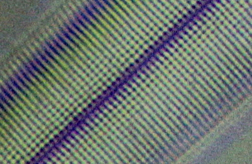 1. Die Gitterkonstante schwankt bei dieser Art relativ stark. Man bekommt daher öfter einmal ein Exemplar mit etwas gröberer Struktur unter das Objektiv.