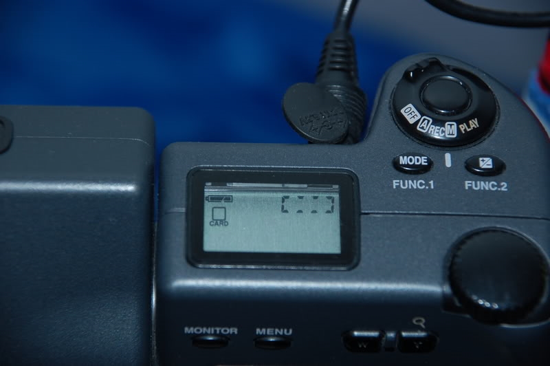 Ich besitze zwei CP 990, die sich beide etwas bockig mit den verschiedenen Fernauslösern verhalten. Mit dem originalen Nikon MC-EU1 lassen sie sich manchmal nicht einschalten oder ich bekomme kein Monitorbild, ebenso lassen sich bei angeschlossenem "China-Auslöser" oft die Kameras nicht "komplett" einschalten, sondrn zeigen statt des üblichen Displayinhaltes folgenden Anzeige im Display ( sie unten ). Nach zwei- oder dreimlaigen An/Ausschalten erscheint dann plötzlich der normale Displayinhalt und die Kamera funktioniert, ebenso, wenn ich bei eingestecktem "China-Auslöser" diesen abziehe.