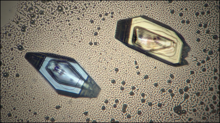 wenn ich die Hintergründe der letzten beiden Bilder so vergleiche, so sehe ich da eigentlich keinen großen Unterschied in der Farbe. Wenn die Kristalle verschiede Farben haben, so liegt das wohl daran, dass sie unterschiedlich dick sind.
