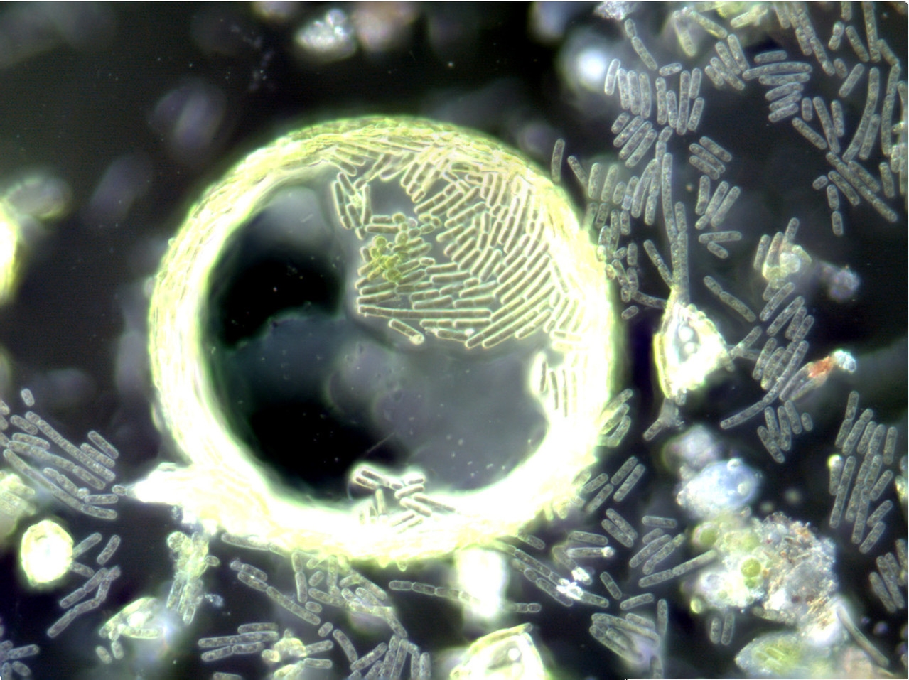 Da habe ich seltsame kugelige Algen- oder Bakterienkolonien entdeckt.