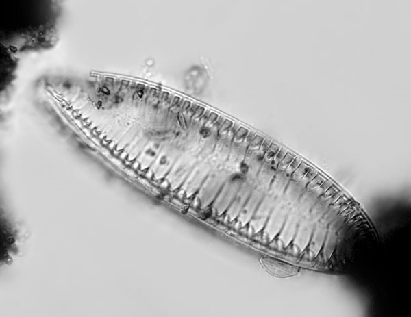 Deine Aufnahmen sind übrigens prima. Nur manchmal sind sie für die Bestimmung nicht optimal.  Schau doch einfach einmal in eine Diatomeen-Flora (eine moderne, mit Photos).  Dann wirst Du sehen, auf welche Merkmale es ankommt und was Du also scharf in Bild bekommen mußt.