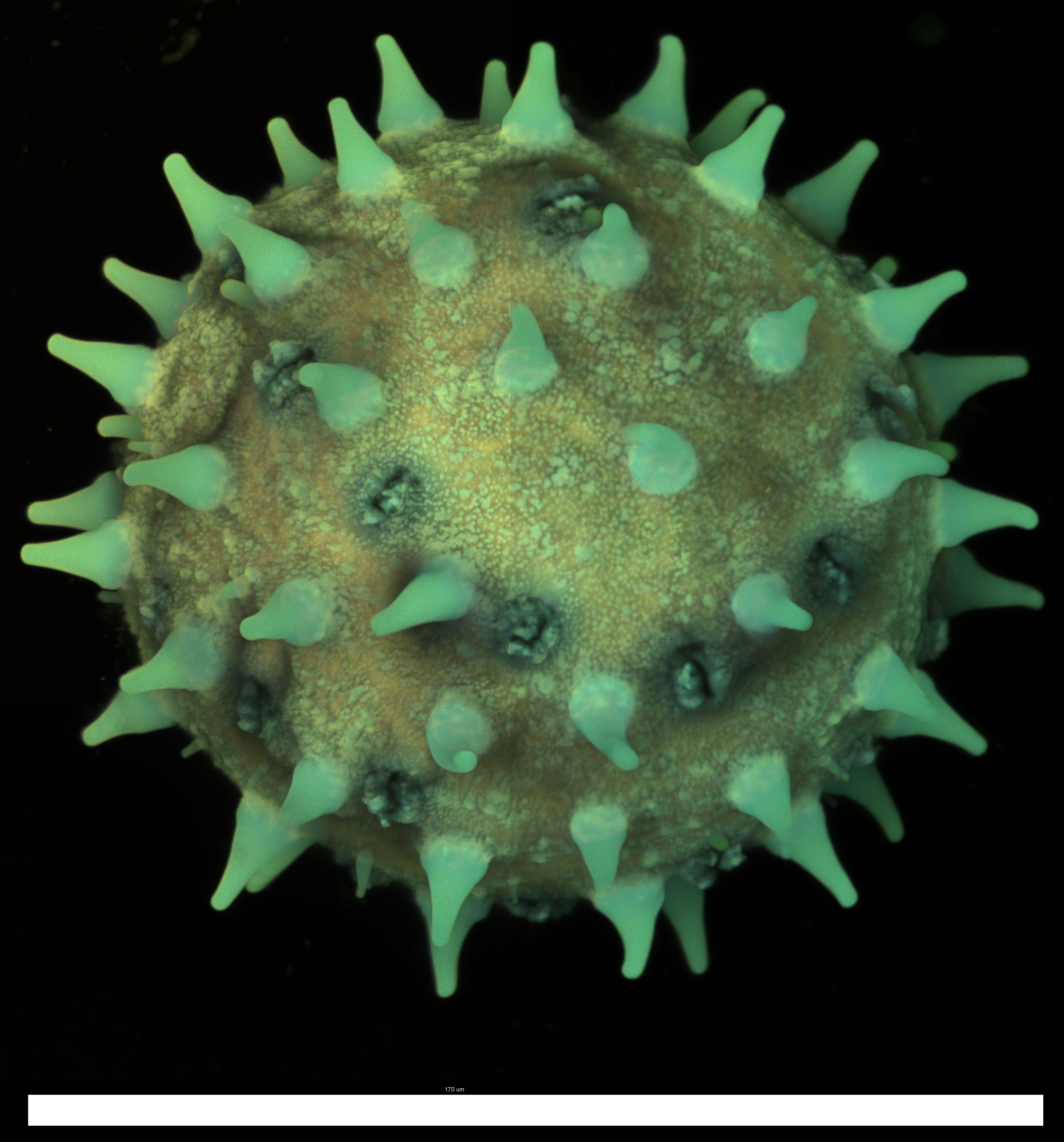 Wenn man sich das Bild aber bei voller Auflösung anschaut sieht man, dass dann das gleiche Problem auftritt wie oben bei den Osterglockenpollen (außerdem werden auch noch Renderingartefakte sichtbar, aber das ist ein anderes Thema). Dazu bitte auf diese Seite gehen und dann auf das Bild klicken um es in voller Größe zu sehen: https://www.bioimaging.bmc.med.uni-muenchen.de/instrumentation/live-cell-room/malpighi/malpighi-gallery/2016-07-28-hibiscus-pollen3_001.jpg.