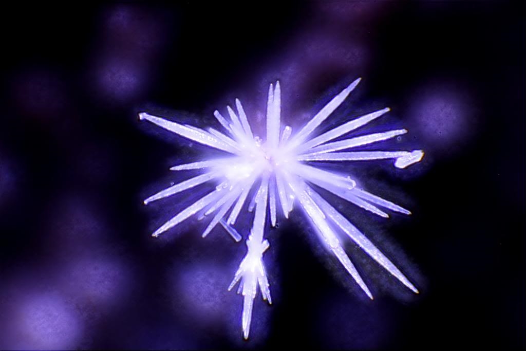 in einer freien Minute habe ich mich mal an Sublimation versucht... Objektträger mit Hohlschliff, zweiter Objektträger darüber, Zahnstocher, Wäscheklammer und Spiritusbrenner bis des dampft ;-).
