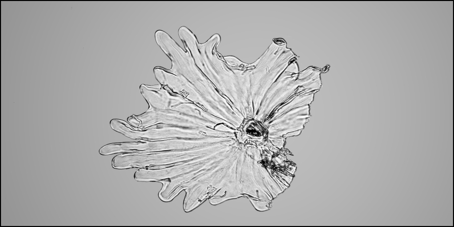 By the way, habe ich das Blatt eines Bodendeckers bei 405nm angesehen und folgende "Sternhaare" gefunden: