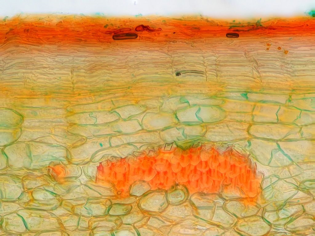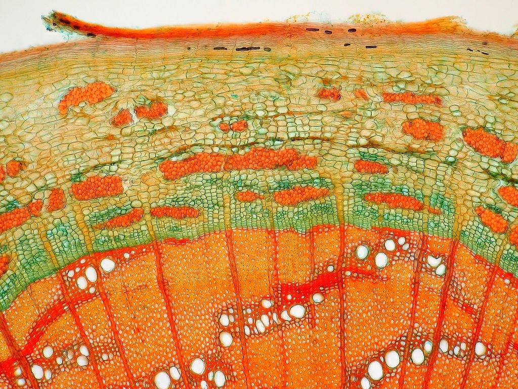 Im mikroskopischen Bild zeigt sich der Aufbau des Sprosses.