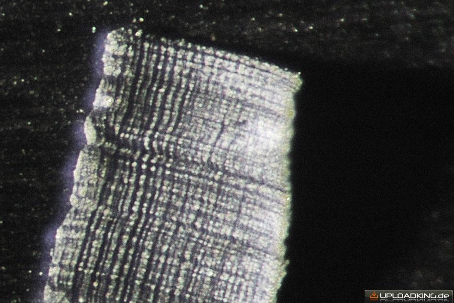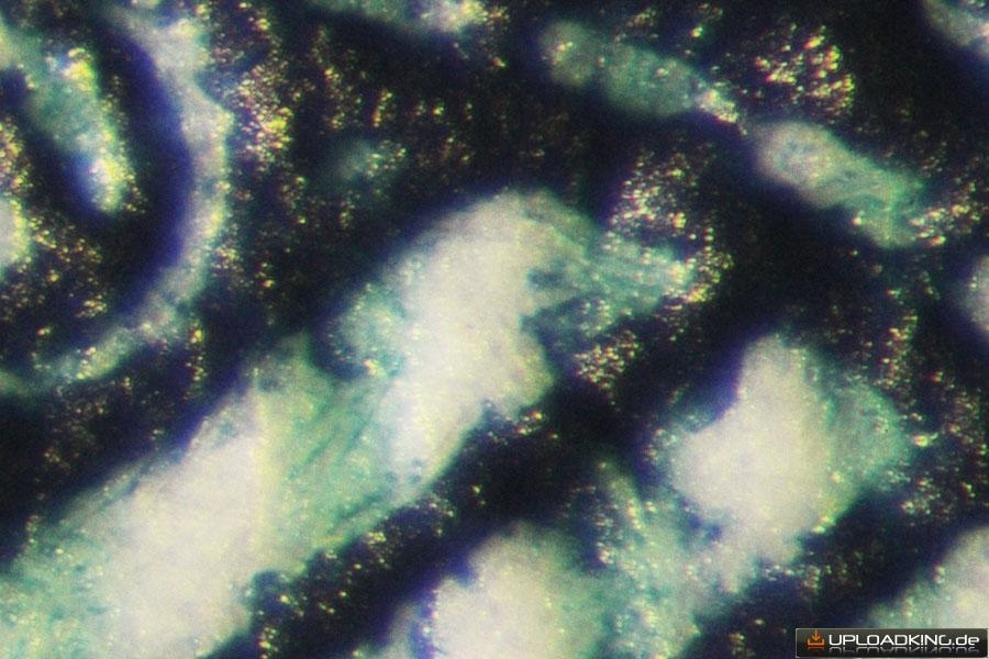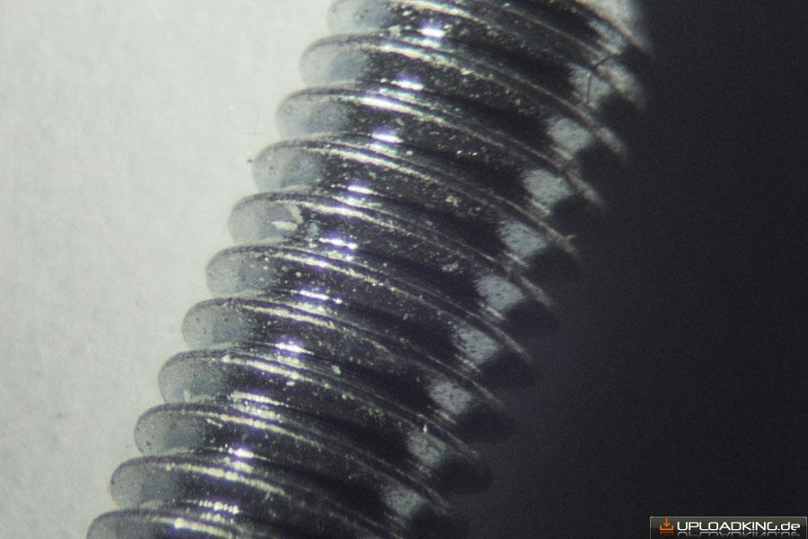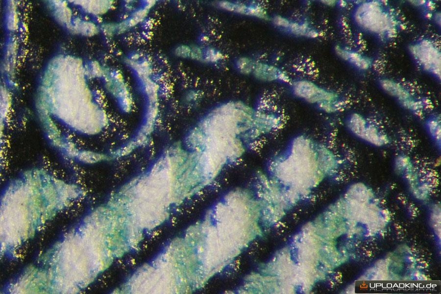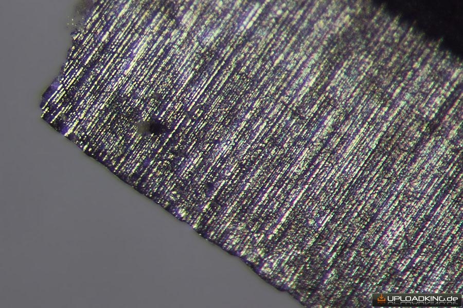 Metall ist schwierig, wie man sieht. Machen Sie doch auch ein Photo von einem vertrauten, flachen Objekt; der 20 Euro Schein bietet sich als Vergleichsobjekt an; siehe http://www.mikroskopie-forum.de/index.php?topic=12046.90
