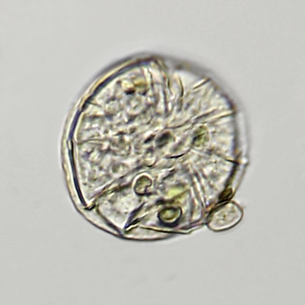 Die weiche Schale von Mircrocorycia radiata ist meist nahezu farblos, lediglich das Zellplasma präsentiert sich in einem schmutzigen Grau. Der Schalendurchmesser beträgt bei uns zwischen 30 µm und 45 µm. Ferry maß in den Niederlanden im Durchschnitt nur 28 µm (http://www.arcella.nl/microcorycia-radiata). Es handelt sich aber um dieselbe Art.
