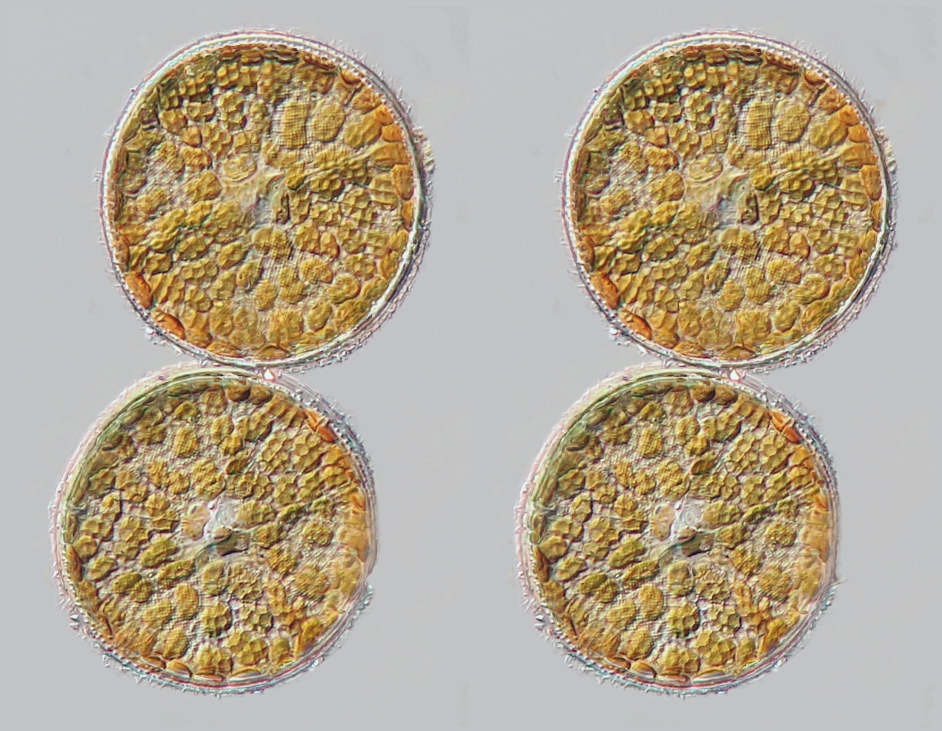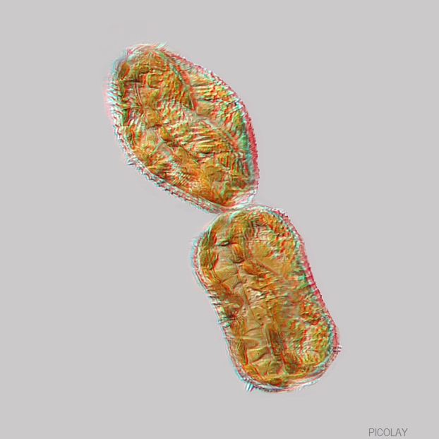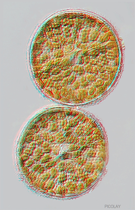 Allerdings hat man von beiden Zellen sowohl Lateralansicht als auch Aufsicht. Die beiden sind nur etwas anders um den Mittelpunkt gedreht. Es handelt sich natürlich ;) um ein typisches Beispiel, bei dem durch Stacking (= digitales Plattwalzen) Information verloren geht, wenn man nicht den Stereoblick dazu nimmt.