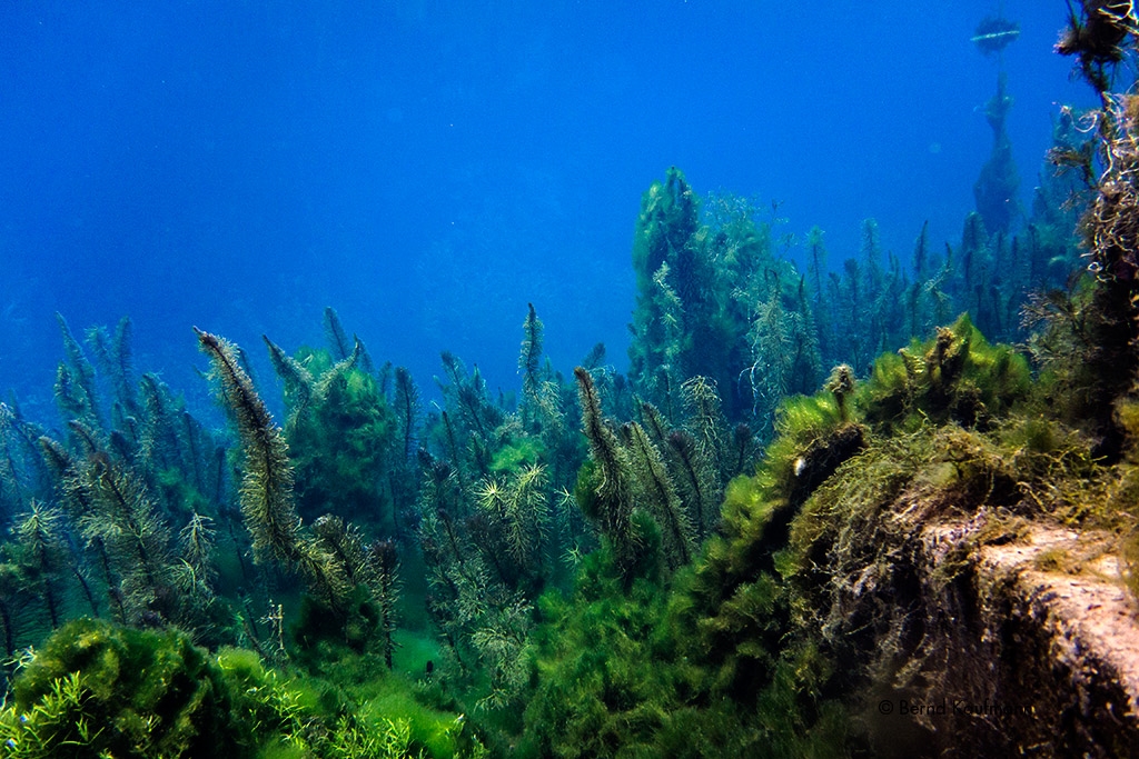 Im ganzen Brenztopf breiten sich diverse Algen immer mehr aus, weil unsinnigerweise die Pflanzen immer wieder mit "Schnursensen" und in einem Fall sogar bei einer Aktion eines Tauchclubs abgemäht wurden und wohl noch immer werden.