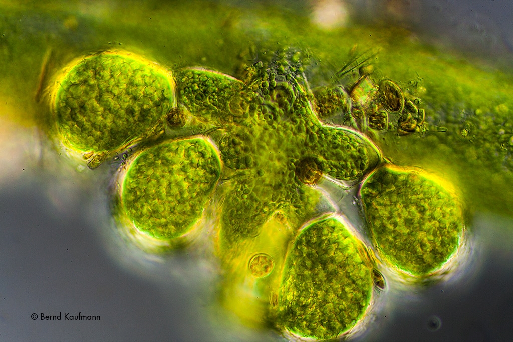 Als Freund der Algen schlagen bei solchen Bildern zwei Herzen in meiner Brust. Einerseits freut mich jeder Algenfund, weil Algen ja auch zur Steigerung der Wasserqualität erheblich beitragen. Andererseits ärgert mich, dass durch Überdüngung und sinnloses Abmähen die Lebensgrundlagen der höheren Wasserpflanzen zerstört werden.