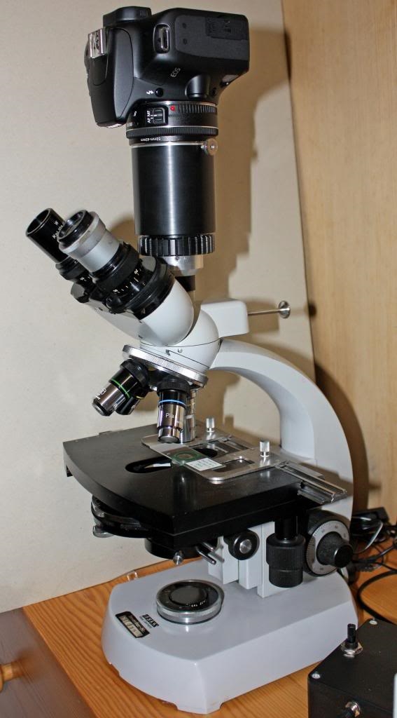 Kamera Canon EOS 1000D, Foto-Objektiv Canon EF 40mm 1:2,8, Okular Zeiss KPL10x/18 Brille und bei den folgenden Bilder das Objektiv Zeiss PL 10/0.22 160/-. Also alles noch erschwingliche Komponenten. Wer hat schon ein S-KPL...