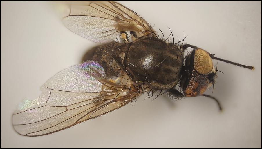 Dem Flieglein selbst war's herzlich egal. Es hatte die Nacht nicht überlebt und war – auf allen sechs Beinen stehend – auf einem Telekien-Blatt entschlafen. Eine Blumenfliege (Anthomyiidae) übrigens, wurde mir mitgeteilt: