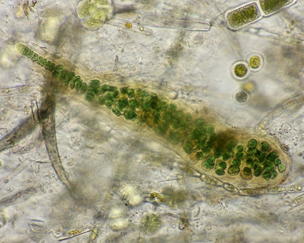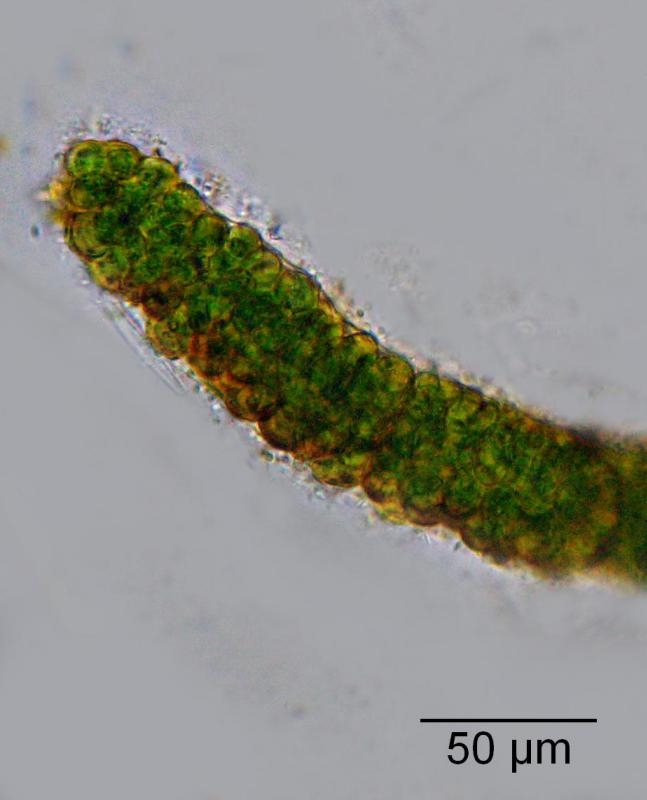 in Angies Probe aus dem Gieringer Moor fand ich dieses wurstförmige Lager von rundlichen Zellen. Leider ist mir keine bessere Aufnahme gelungen. Was kann das sein? Eine Stigonema-Art?