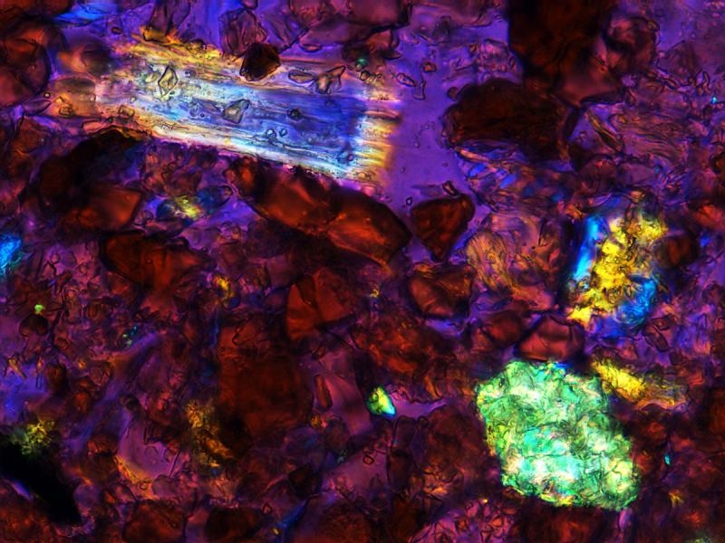 Jemanden, der sich mit Kristallen im Polmikroskop beschäftigt wird das nicht wundern.