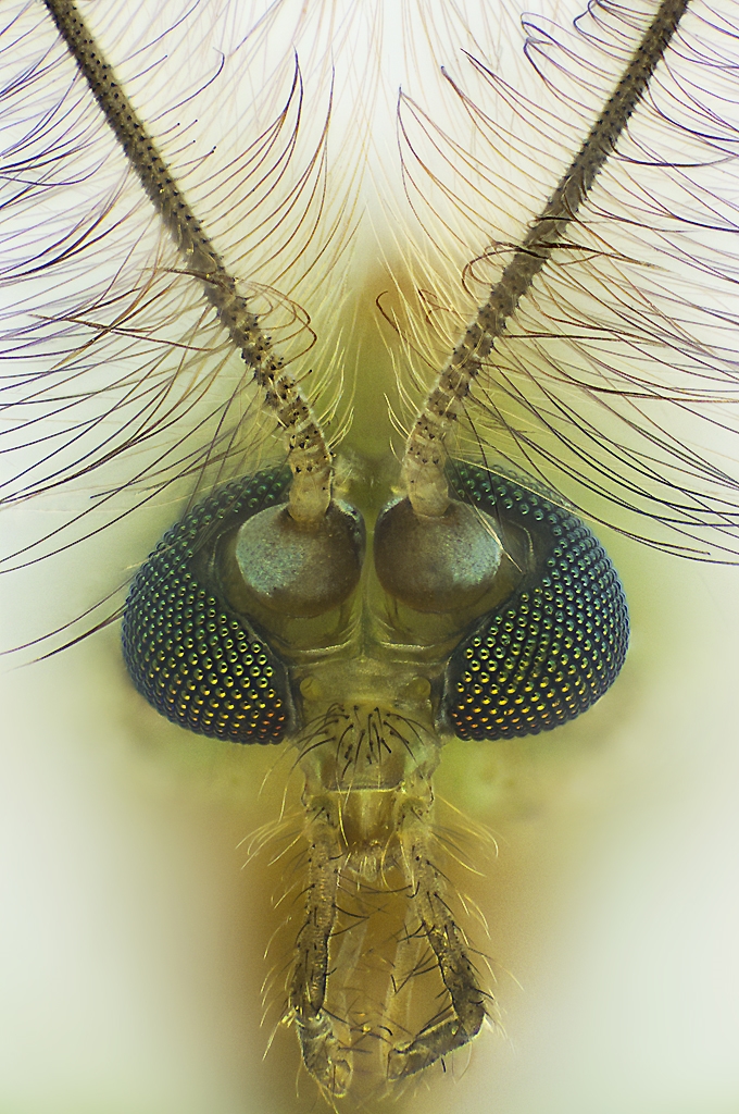 wollte Euch ein Männchen einer Zuckmücke zeigen. Leider sind die Fühler etwas verwuschelt! Aber die grünen Schwingköbchen sind recht putzig!