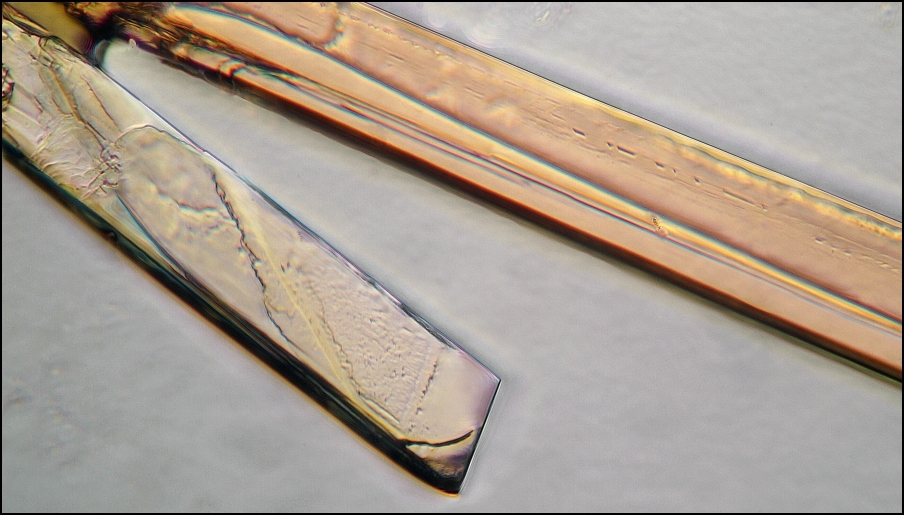 Das Extrakt – eine olivfarbene Flüssigkeit mit Pfeffergeruch – kristallisiert wochenlang unter dem Deckglas weiter.