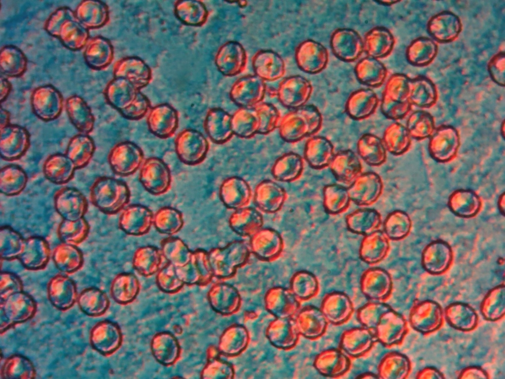 Dass dein Durchlicht Bild von frischem Blut mit lebenden Leukozyten anders aussieht wundert mich nicht.