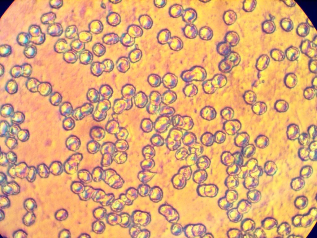 Ich habe einen 1 Zellen dicken getrockneten Ausstrich mit Auflicht DIC gezeigt.