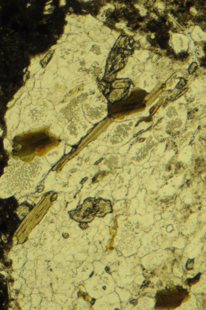 Die Bilder in PPL habe ich nur zur Ergänzung beigegeben, da ich vermute, dass ich möglicherweise beim Mineral (Biotit) auf dem Holzweg bin, obwohl eigentlich alles dafür spricht. Wenn nur nicht das Problem mit dem Kompensator und den Achsbildner wäre.