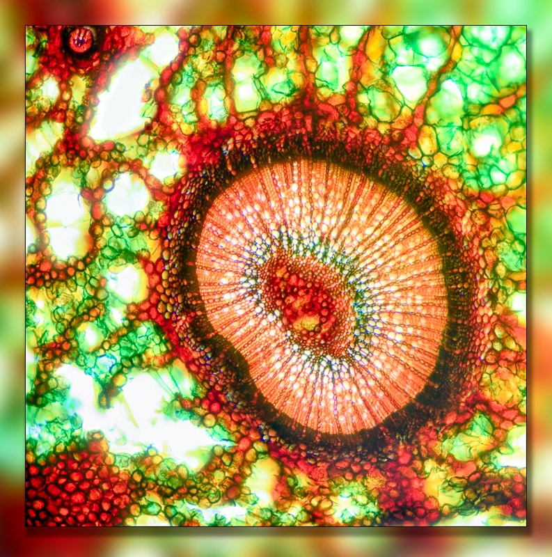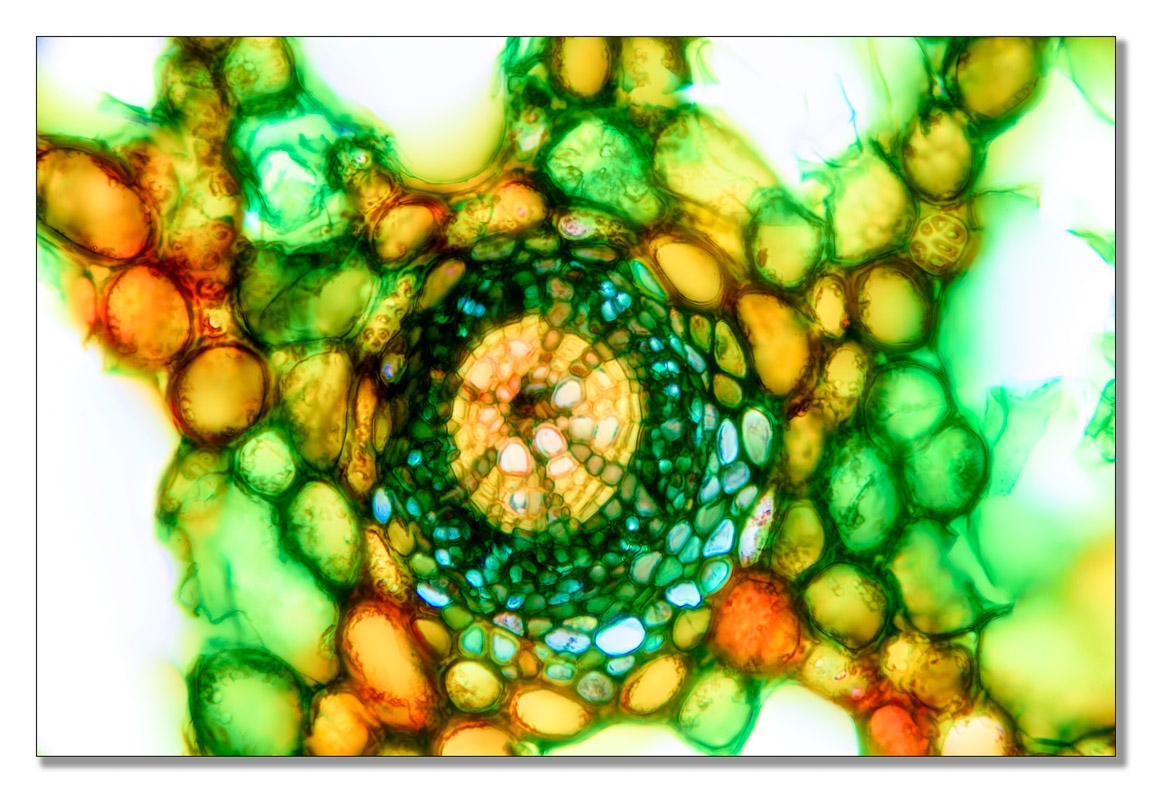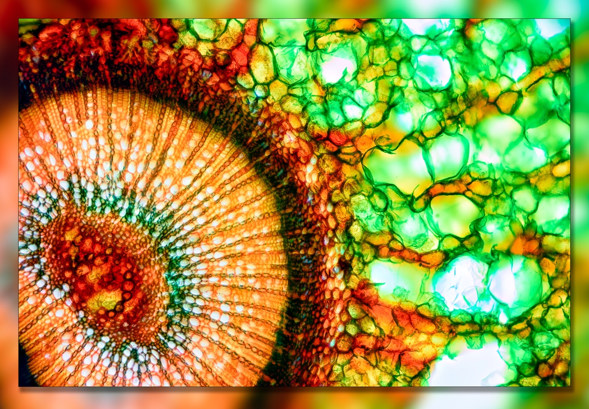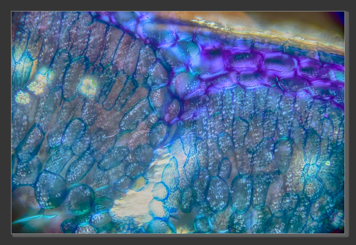 Eine weitere Vergrößerung, und um die Zellstruktur hervorzuheben, im polarisierten Licht