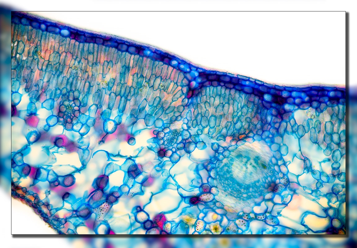 Zum Abschluss ein Blattquerschnitt, wie die ersten Bilder mit der Wacker Simultanfärbung