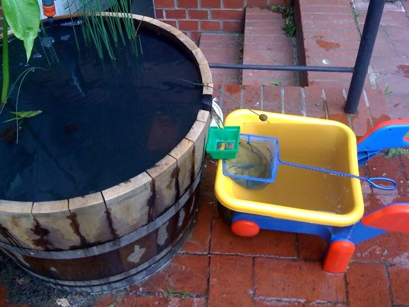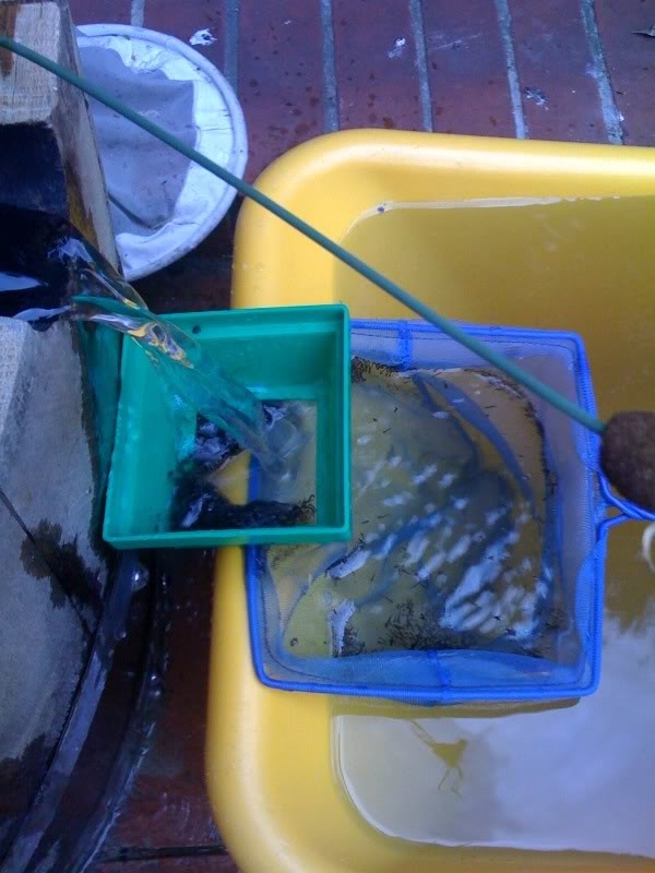 Ich habe am Sonntag zur Freude meiner Fische eine Mückenlarvenfangmaschine gebaut. Aquarienaltwasser rein in den Fassteich und Mückenlarven rein ins Aquarium  ;D