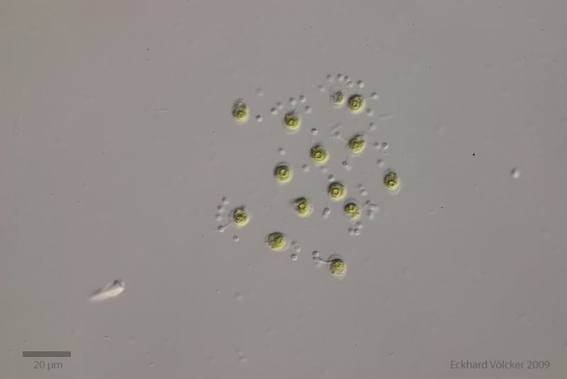 Hier sieht man die "Schwärmer" die an die Algenzellen "andocken".