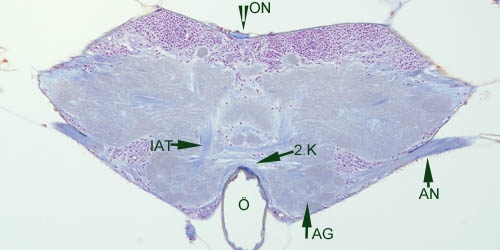 Oben zeigt sich immer noch der Ocellennerv ON zur Orientierung....