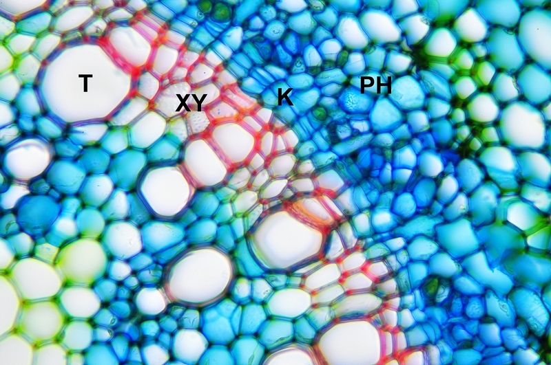 PH = Phloem, K = Kambium, XY = Xylem, T = Trachee