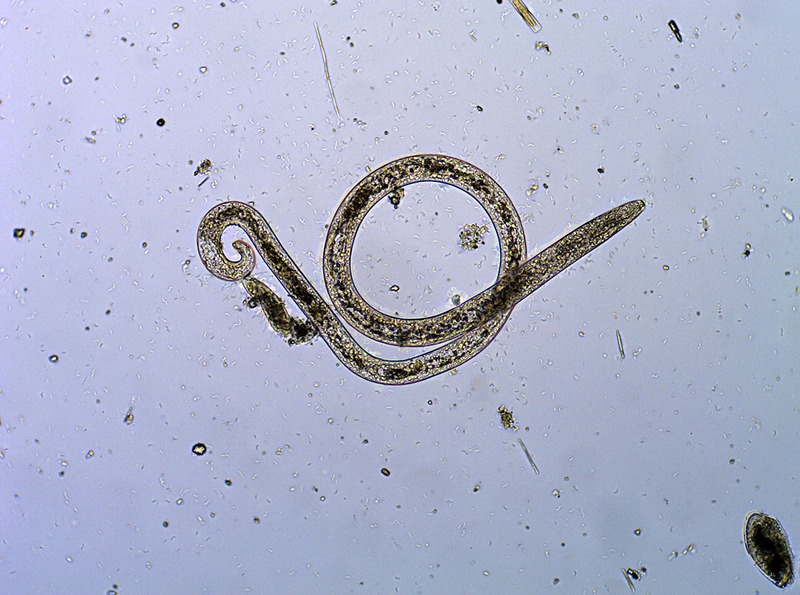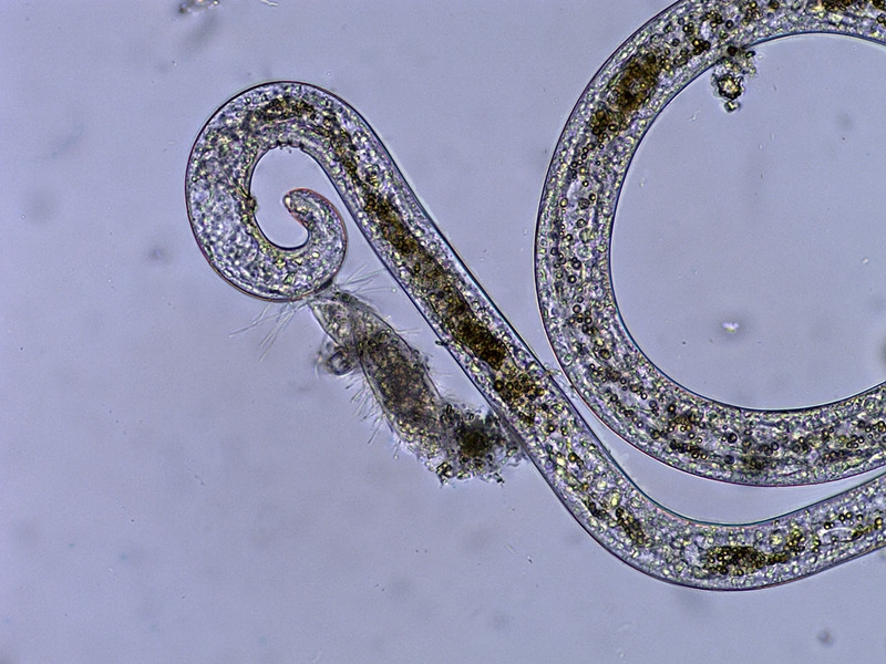 Nematode mit anhängendem Wimpertier