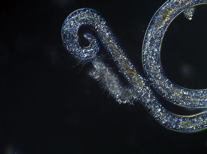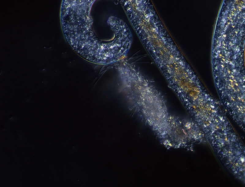 Bei genauem Betrachten meine ich, daß sich an der Stelle wo das Wimpertier(?) anhängt eine halbmondförmige Struktur in der Nematode befindet. Hier die Bilder: