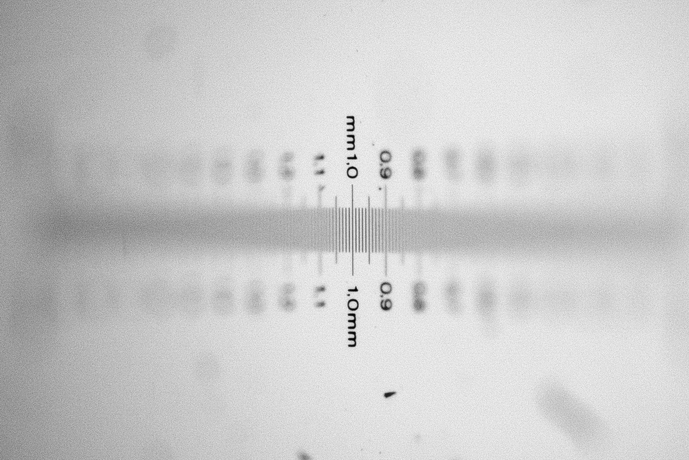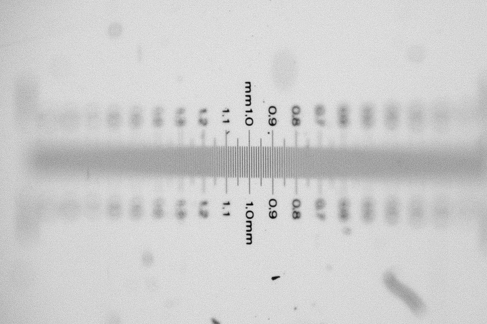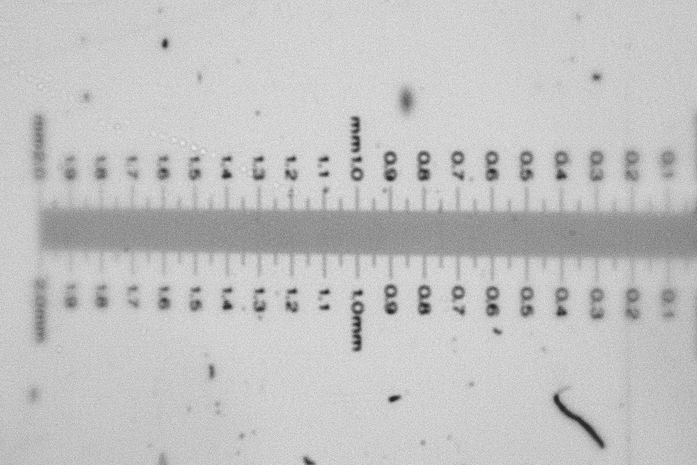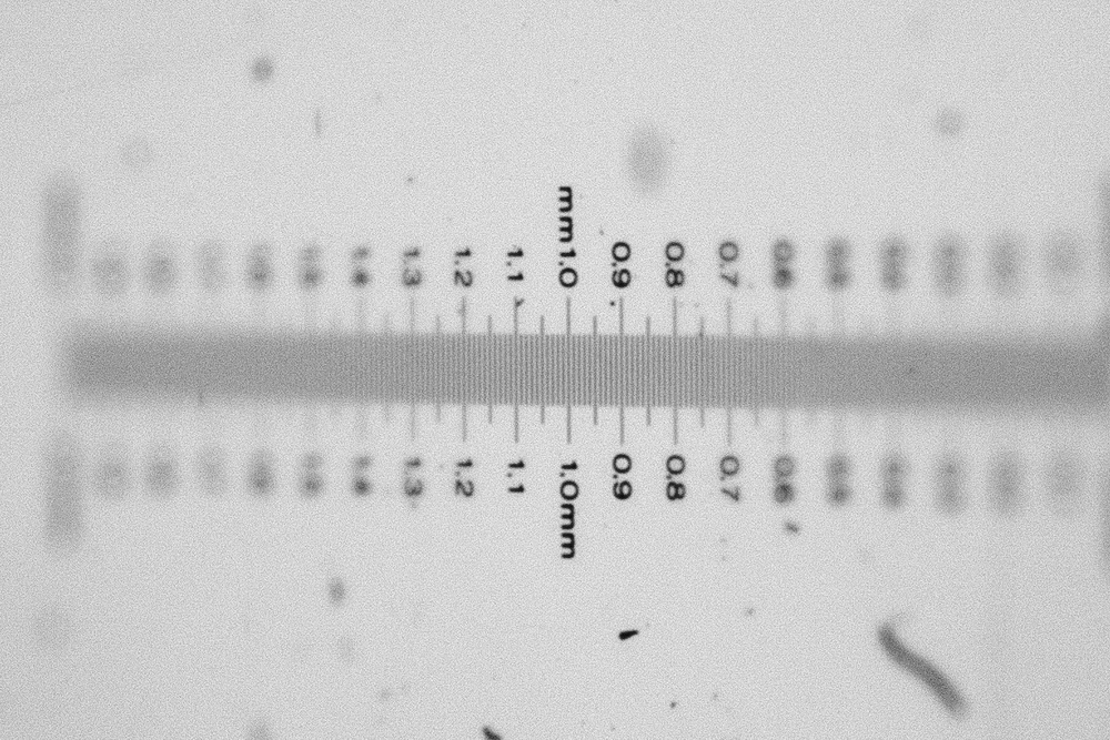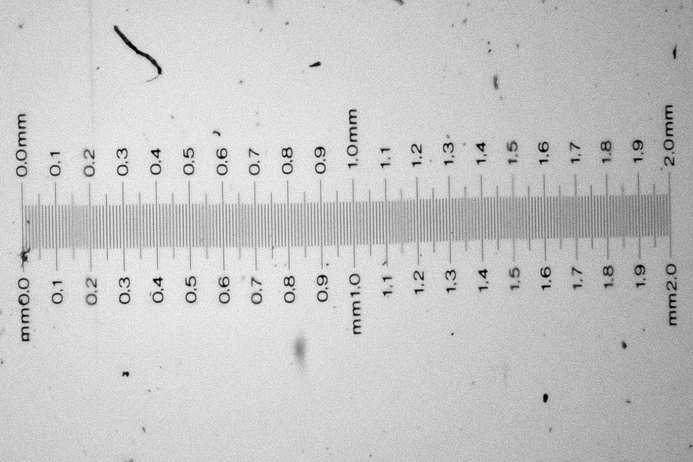 Fotografiert habe ich eine unter 45° geneigte 10µm-Skala,